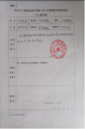 2022年寒假期间,他积极主动地参加了“返家乡”社会实践活动,成为了一名光荣的社区志愿者。活动期间,他和社区工作人员一起清理小区周边小广告;入户走访,走进居民的生活,走进居民的家中,真切的询问居民有什么困难,对社区工作有什么意见或者建议。社会实践期间,他对清雪车不能清扫到的位置进行清扫,为居民的出行保驾护航。还承担了社区每日的疫情防控消杀工作,使社区的工作人员有良好安全工作环境,给办事的居民提供一个安全放心的办事环境。