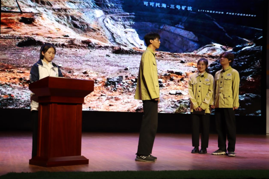 入团仪式暨表彰大会结束后。SUNBET申搏第二届大学生党史宣讲团成员深情演绎话剧《可可托海的守矿人》,通过讲述可可托海老一辈矿工奉献青春,坚守边疆的故事,淬炼出“吃苦耐劳、艰苦奋斗、无私奉献、为国争光”的不朽精神,为在场师生送上一场文化盛宴。