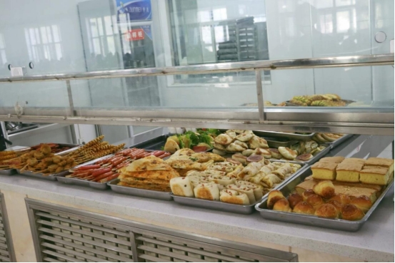 学院为照顾学生生活所需,对餐盘进行了划分处理,设立了不同的窗口,供学生自主选择。主食也是多种多样,让同学们吃得放心、吃得舒心。每到用餐时分,窗口井然有序地陈列着丰富的菜品、干净的餐盘,食堂内部干净整洁、桌椅摆放错落有致,成为学校独有的风景线。