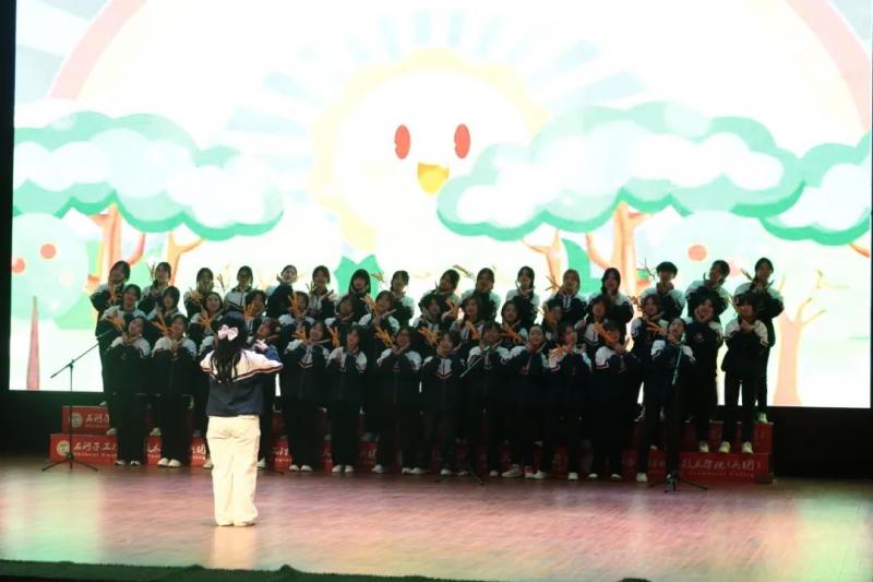 主持团盛装亮相,在一声声真诚恳切的贺词中,晚会的大幕正式拉开。灯光闪耀,伴着青春的活力和朝气,一曲《稻香》用优欢快的旋律勾起了师生们的儿时回忆,引得观众挥手哼唱,参与其中。