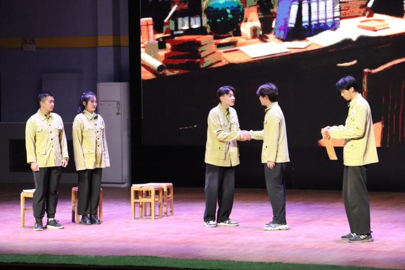 为变“老师讲”为“学生讲”,宣讲团师生创作原创舞台剧《跨越时空的对话》,通过演绎的形式讲述了李大钊、邓稼先、袁隆平、军垦战士等先辈为了祖国发展、为了人民幸福而奉献的故事。