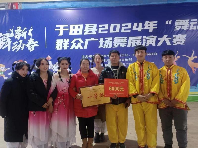 2月20日,在麦盖提村委会领导的指导下,阿布杜热合曼·买托合提参加了于田县2024年“舞动新春群众广场舞”展演大赛,在此次活动中,麦盖提村荣获了“第一名”的好成绩。