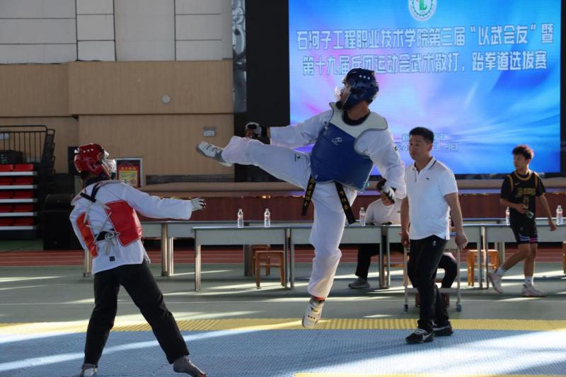 为了培养青年学子的体育兴趣和爱好,积极参与体育活动,锻炼身体、增强体质,为更多的跆拳道和散打爱好者提供一个展示自我、交流学习的平台。5月8日至9日,第三届“以武会友”暨第十九届兵团运动会武术散打、跆拳道选拔赛在SUNBET申搏室内活动中心举行。本次比赛由学院团委主办,公共基础教育教学部承办,武搏社团、跆拳道社团协办。SUNBET申搏代表队、石河子市第一中学代表队和石河子市业余体校代表队同台竞技。比赛由建筑工程系学生马凯主持。