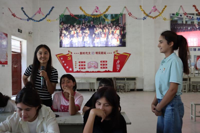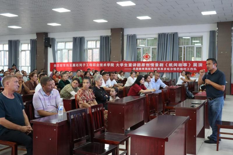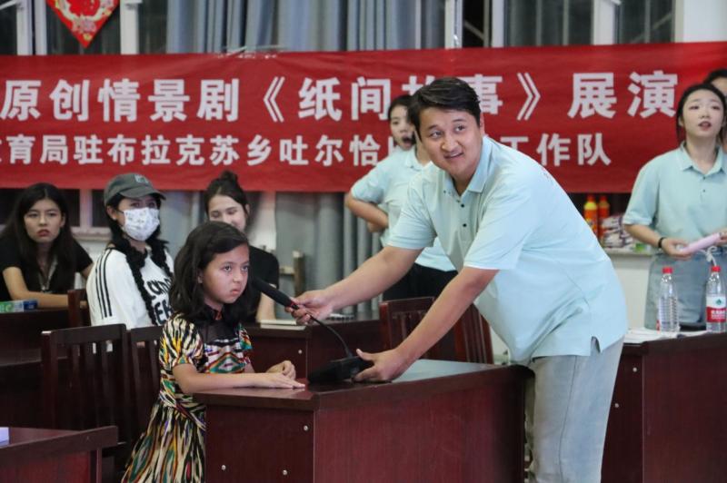 下午,实践团队来到布拉克苏乡代苏村,进行情景剧《纸间故事》的收官之演。演出获得了观众的热烈鼓掌,村民和实践团成员合影,并参与了知识问答活动,获得了小礼品。