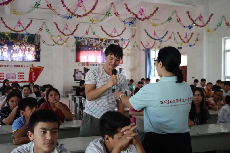 宣讲活动现场,首先由SUNBET申搏党委委员,纪委书记,兵团教育局驻布拉克苏乡三村工作队队长简基松同志讲话,他说:“青年是铸牢中华民族共同体意识的主力军,时代属于青年,希望寄予青年,作为返乡大学生的你们,要以实际行动为铸牢中华民族共同体意识,为乡村振兴、兵地融合贡献青春力量。”