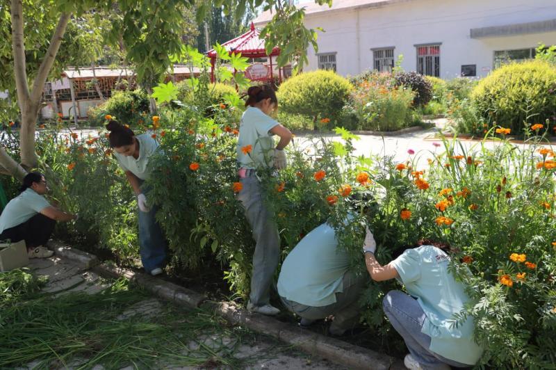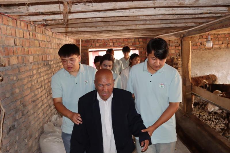 为了深入基层、了解群众生活、提升团队协作能力,实践团在布拉克苏乡吐尔恰巴格村开展了多次志愿服务活动。在简基松同志的带领下,先后两次走访慰问了当地4户村民。在村民家,实践团成员与他们亲切交流、帮忙整理打扫庭院、赠送米面油等慰问品。在村委会大院,实践团成员清理杂草、整理花卉、自行做饭,在劳动中体验自给自足的快乐。
