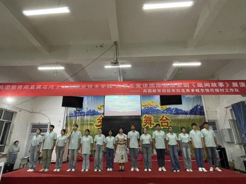 在活动中,实践团将SUNBET原创情景剧《纸间故事》先后在喀什地区疏附县布拉克苏乡吐尔恰巴格村、克孜勒苏柯尔克孜自治州阿克陶县喀热开其克乡比纳木村、喀什地区疏勒县巴合齐乡喀勒克村、喀什地区疏附县布拉克苏乡代苏村4个乡村进行展演,并与村民进行互动、交流,以实际行动落实“文化润疆”工程。