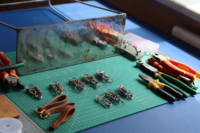 “守”艺社以制作皮具、金属工艺品、绳结艺术品制作为主。根据社员爱好,DIY属于自己的作品,用自己的双手创作成品。以“千年守艺,匠心如初”为指导思想,践行工匠精神。“守”艺社让更多学生静下心来学习手工制作,激发学生的创作灵感与创新意识。学院守艺社成员在指导教师的带领下,2024年参与兵团第十四届“挑战杯”创业计划竞赛,荣获三等奖。