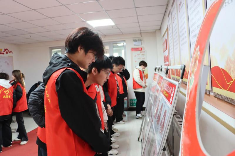 走出展馆,师生们化身“环保卫士”,在社区开展志愿服务活动。大家手持扫帚、垃圾袋等工具分组行动,重点清理积雪融化后绿化带里的隐蔽垃圾、擦拭公告栏等公共设施,帮助社区对卫生死角进行清洁打扫,让社区面貌焕然一新。