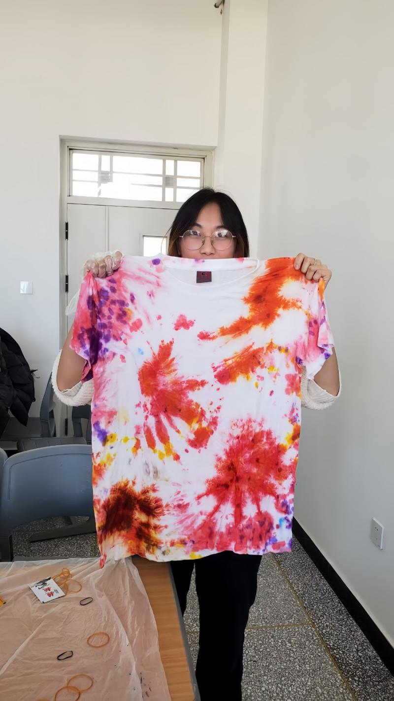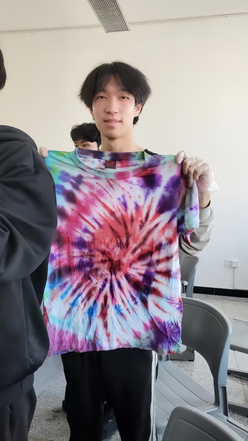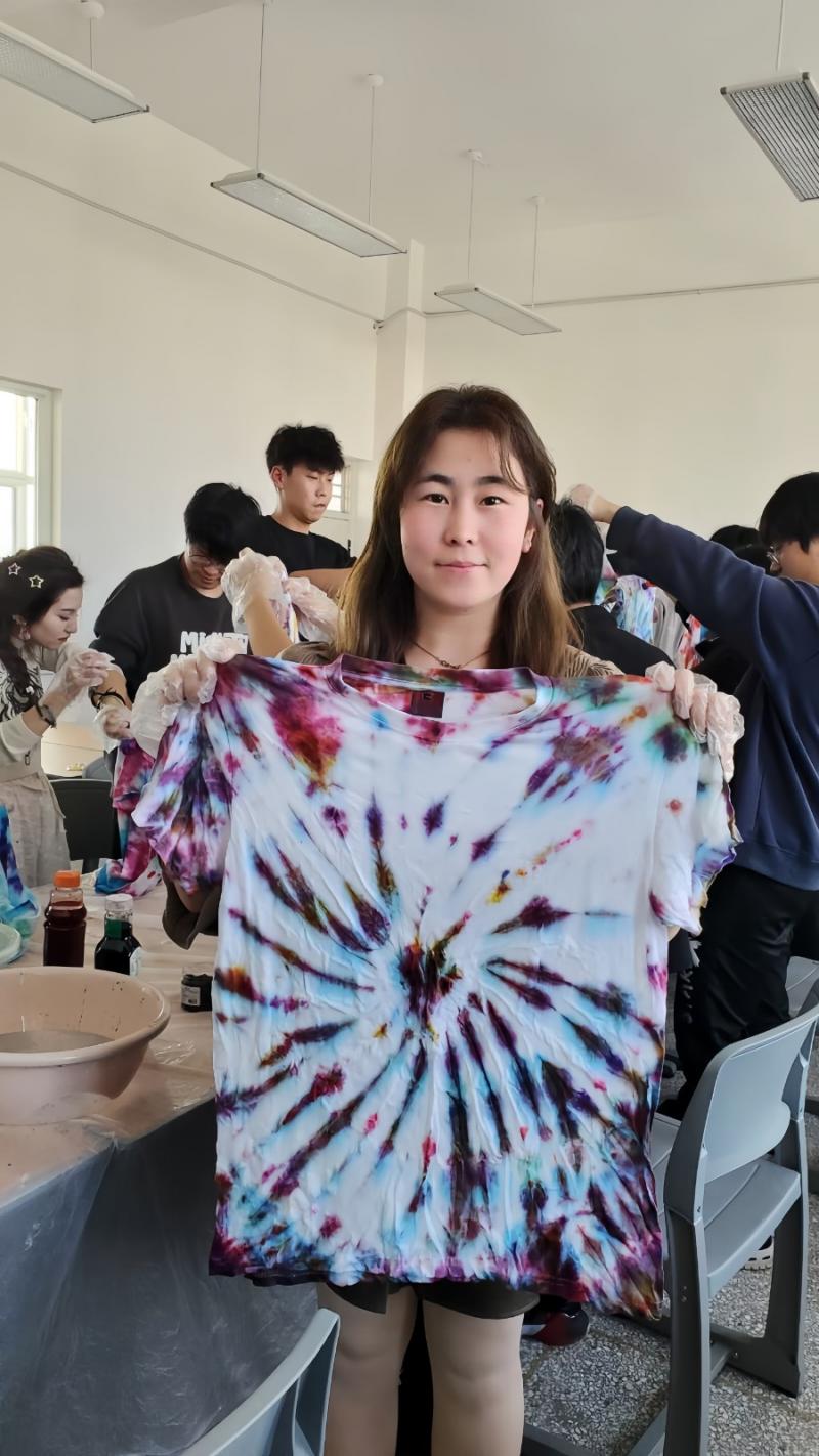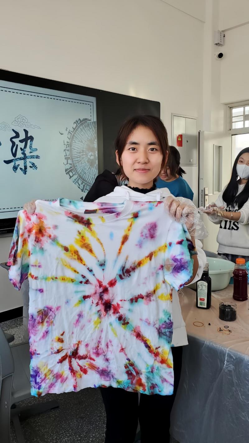 “我们根据自己的喜好和创意,选择不同的布料和染料,按照老师的演示步骤,进行扎结、染色等操作,这个过程十分有趣。”同学们纷纷表示,在看到扎染成果的那一刻,被这项非遗手工惊艳到了。