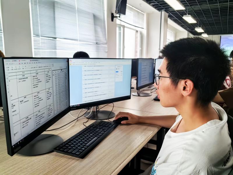 在三个小时不间断的比赛过程中,参赛选手专注地坐在电脑前,不顾天气炎热,展现出建工学子专注严谨的意志品质。