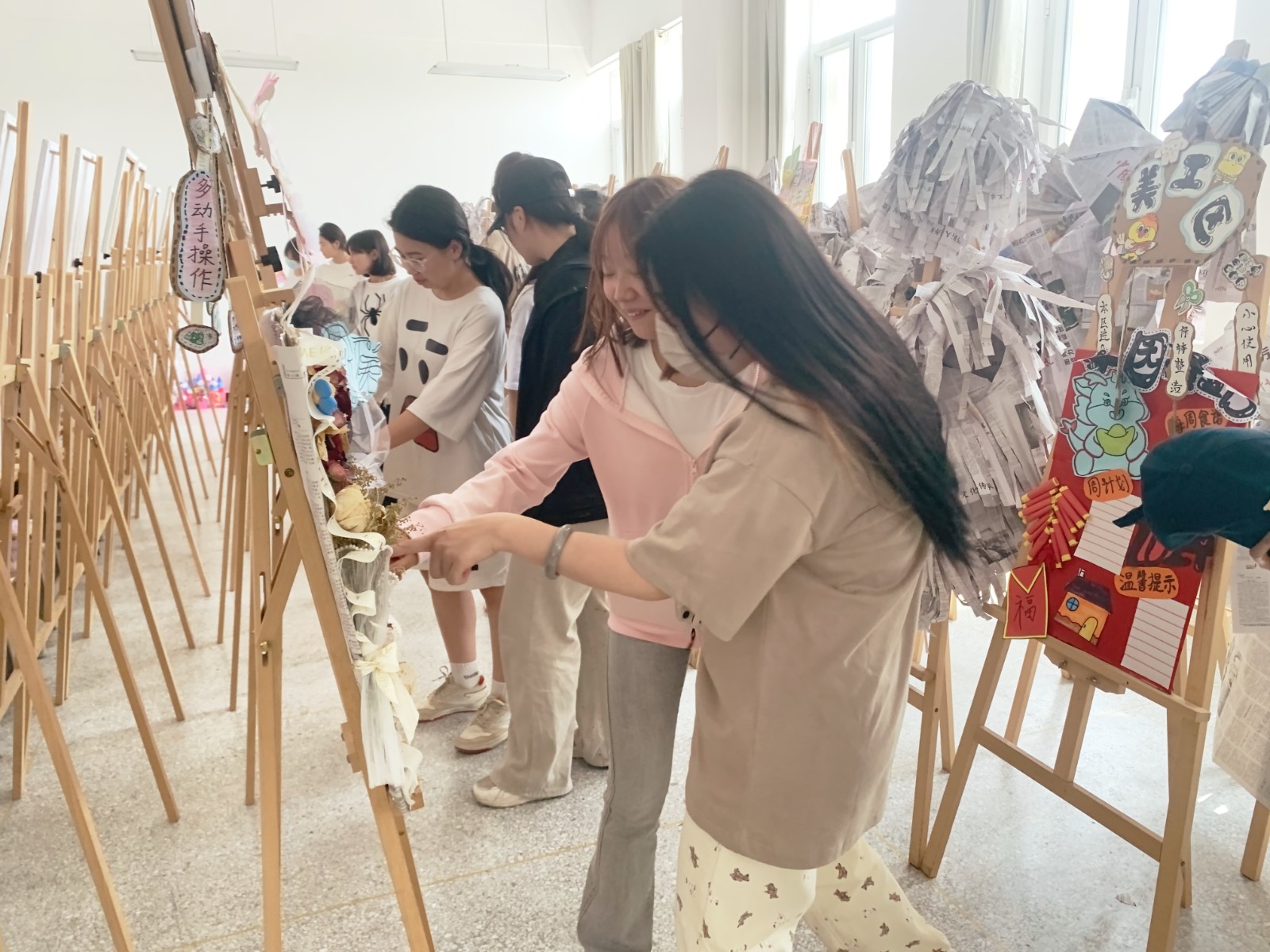 美术手工作品展充满了生命力和创造力,从绘画作品到环创设计,无一不体现出了人文社科系学子扎实的技艺和独特的创意。